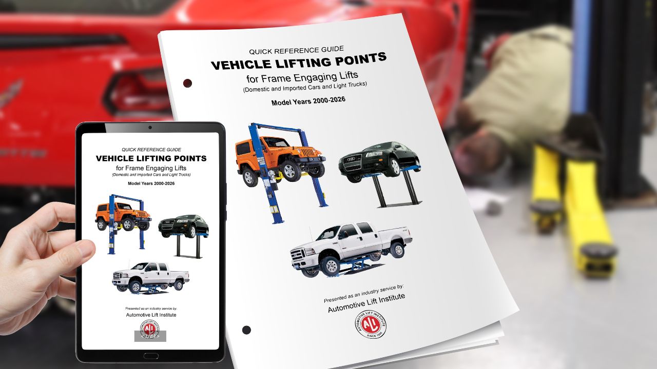 The Automotive Lift Institute (ALI) has released its 2026 Lifting Points Guide, Vehicle Lifting Points for Frame Engaging Lifts.
