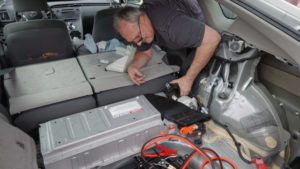 A,Man,Accessing,The,Hybrid,Battery,Fan,In,2011,Toyota
